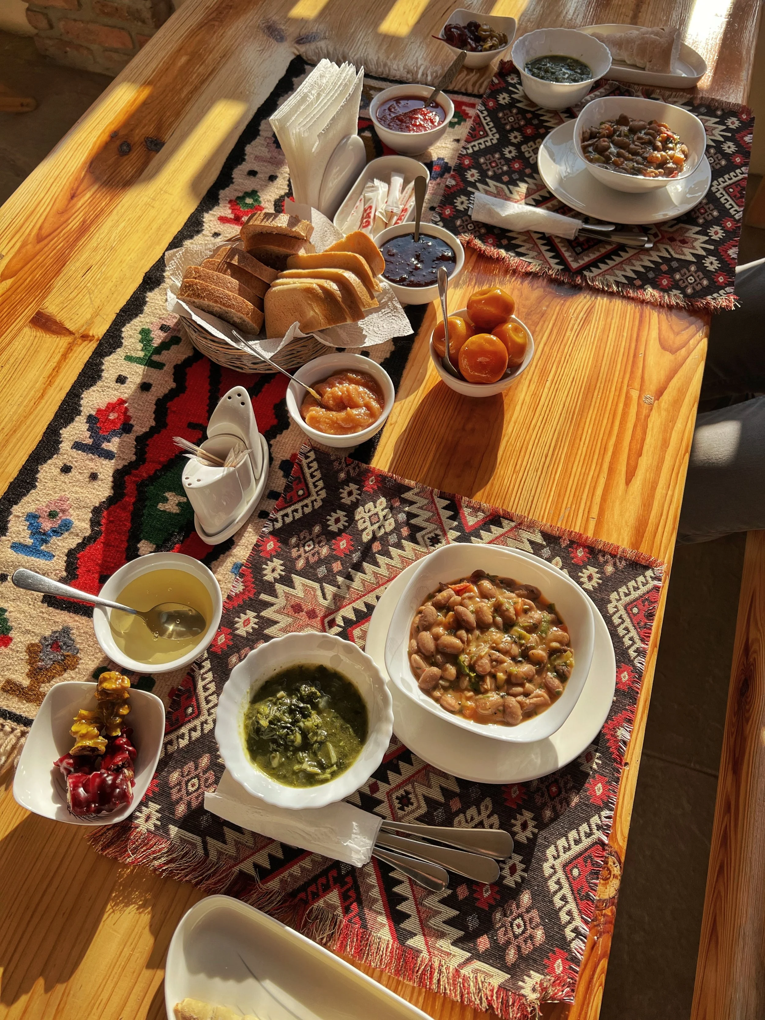 Mtskheta, one of the oldest cities of Georgia and the former capital. We chose to spend the night here staying at a small family run hotel called Hotel Magdalena and it turned out to be one of our favorite places to stay. The breakfast was incredible and an experience in itself, home made dishes of every variety made us truly feel like a welcomed guest so much so we actually felt sad to leave.