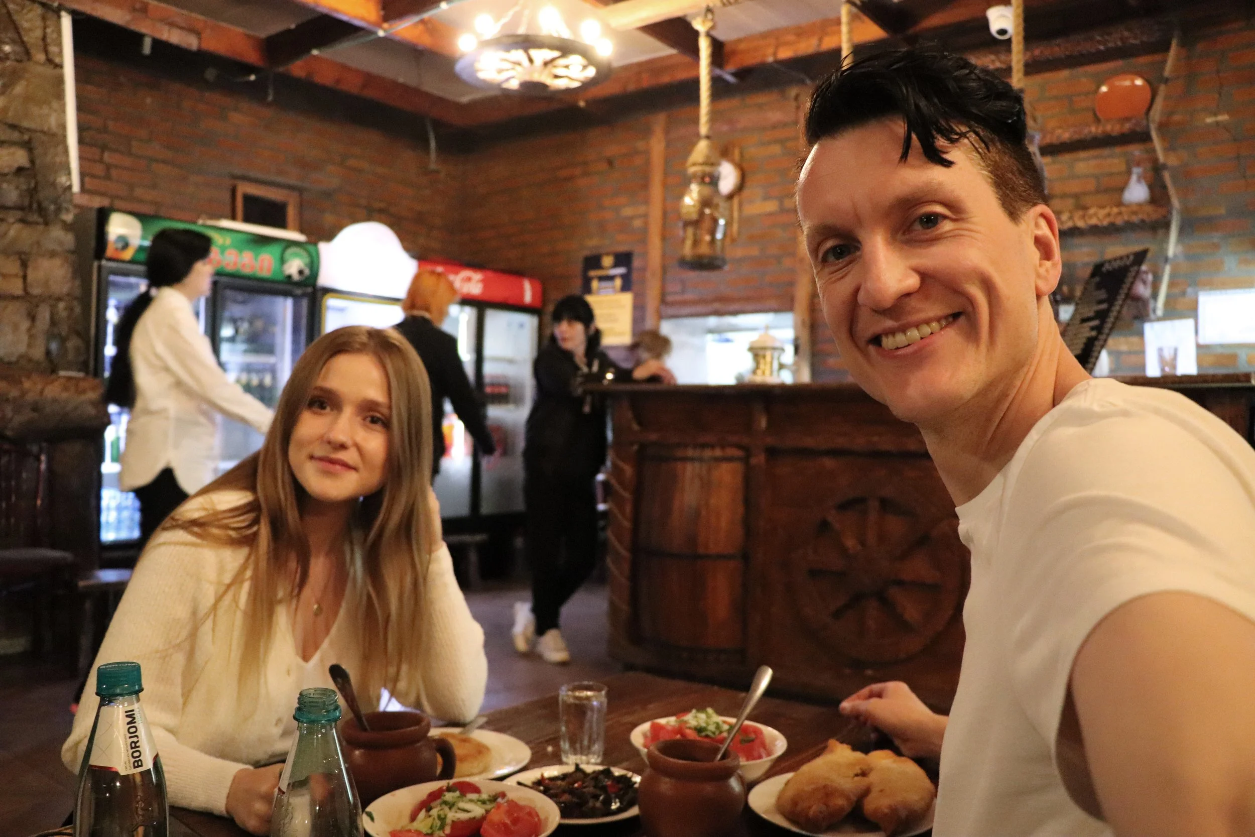 According to historians Kutaisi is one of the oldest continuously inhabited cities in the world and is the second most important city in Georgia. We arrived late into the city and went straight to the hotel (Hotel Green Town), after a quick shower we called a taxi to take us to the city centre which turned out to be a lot closer that we had thought. We went directly to the restaurant Baraqa as it was only open for another hour, whilst trying to order quickly we may have ordered too much food, although having said that not much was left in the end! We wondered the back alleys back to the hotel along with a 4 legged friend that decided to follow us.